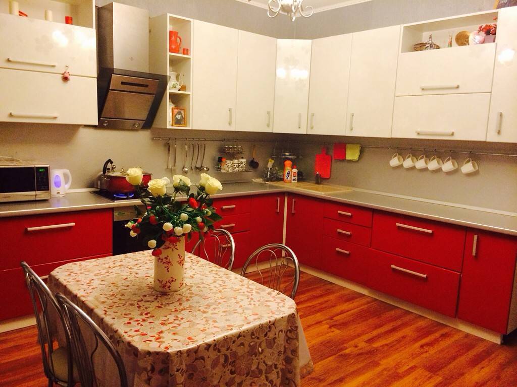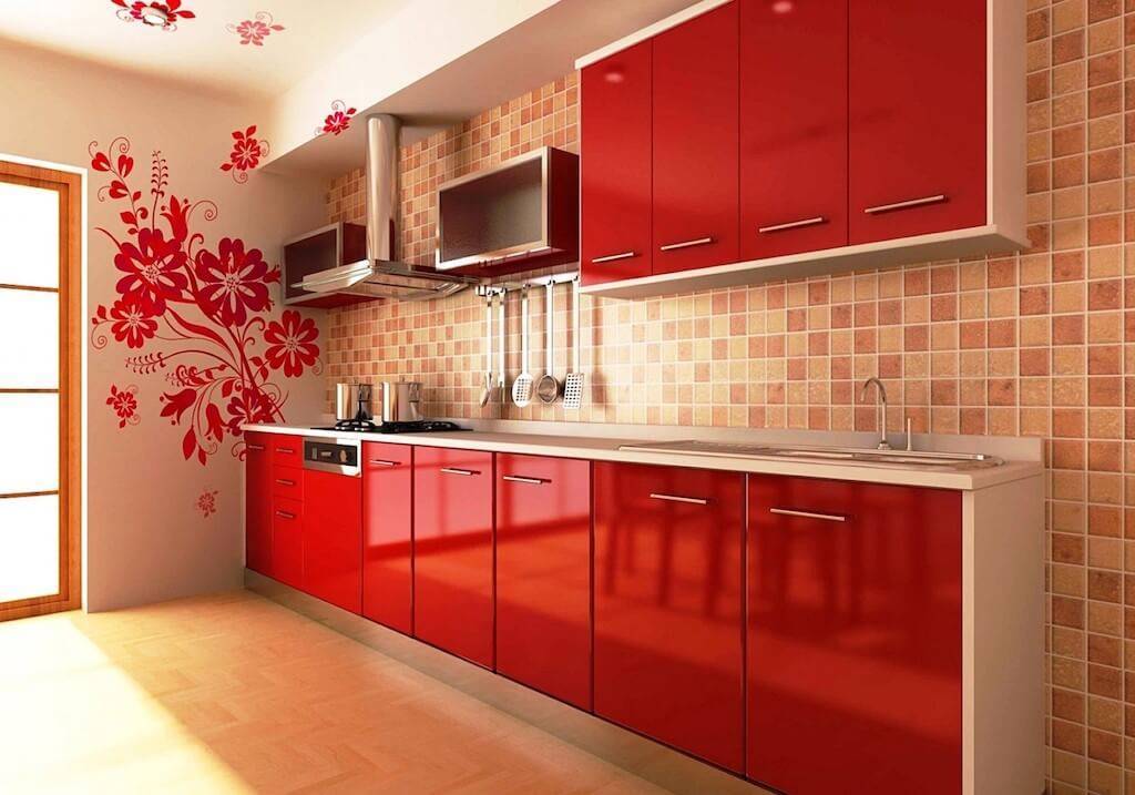 Красный и бежевый – кухня в такой гамме в зависимости от оттенка красного смотрится эффектно и сочно, но при этом не теряет элегантности.