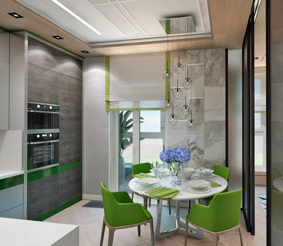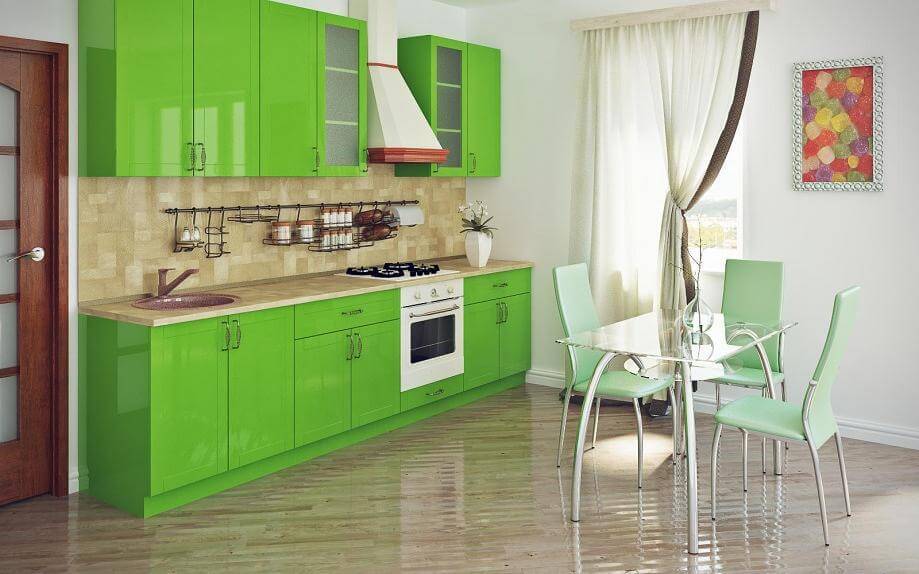 Дизайн кухни в зеленом цвете лаймового отенка