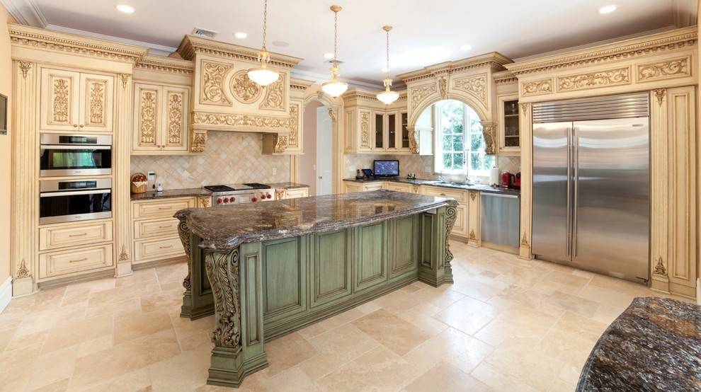 На фото уютная островная кухня в классическом стиле.