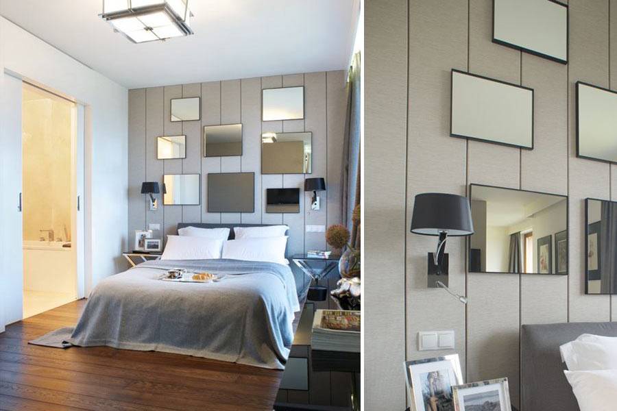 — зеркало «ловит» свет и отражает его. Если в спальне мало окон, поставьте перед ними зеркало. Когда светит солнце, пространство станет ярче. Если мы хотим получить этот эффект, мы должны выбрать обрезные зеркала с большей поверхностью,