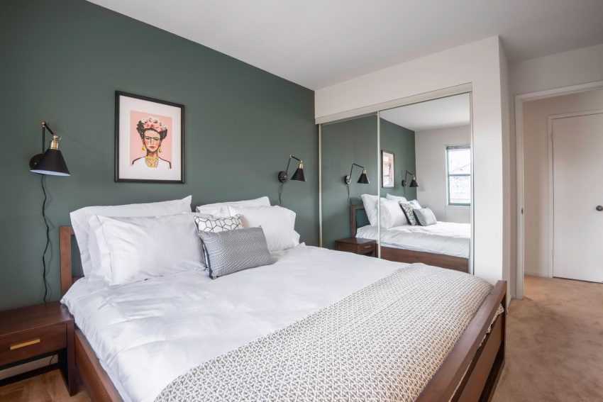 Если не зацикливаться на суеверных утверждениях, касаемо магических «возможностей» зеркал в спальне, тогда отражение кровати в нем мешать качественному релаксу и отдыху обитателей комнаты не будет.