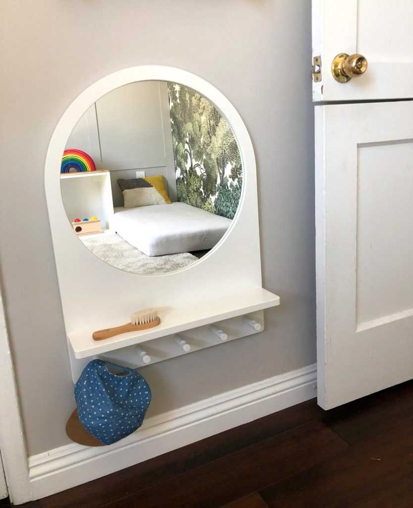 - В мебель – это может быть шкаф либо туалетный столик. Создается интересный эффект, кроме того, очевидна возможность сэкономить полезное пространство;