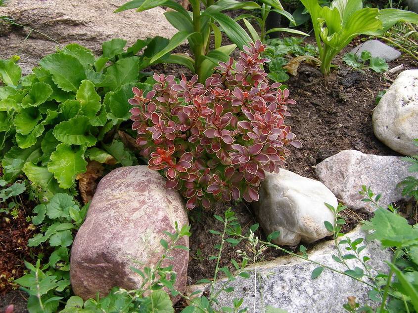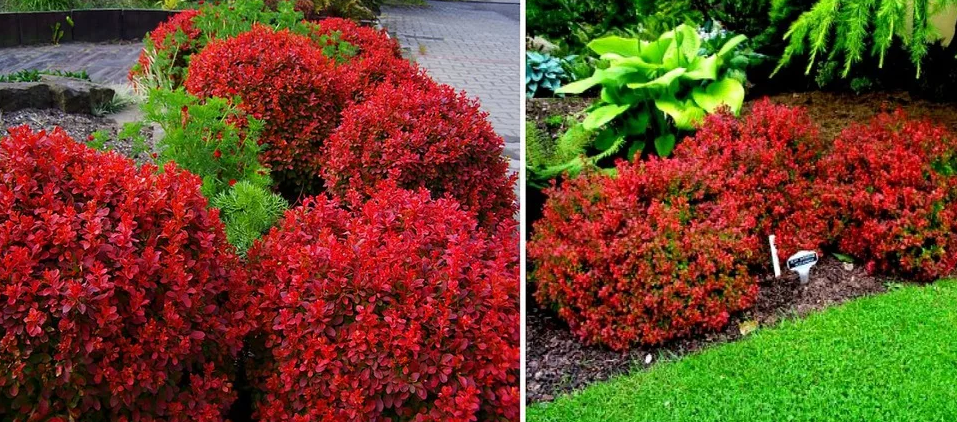 Барбарис Тунберга обычно используют для создания декоративных садовых композиций